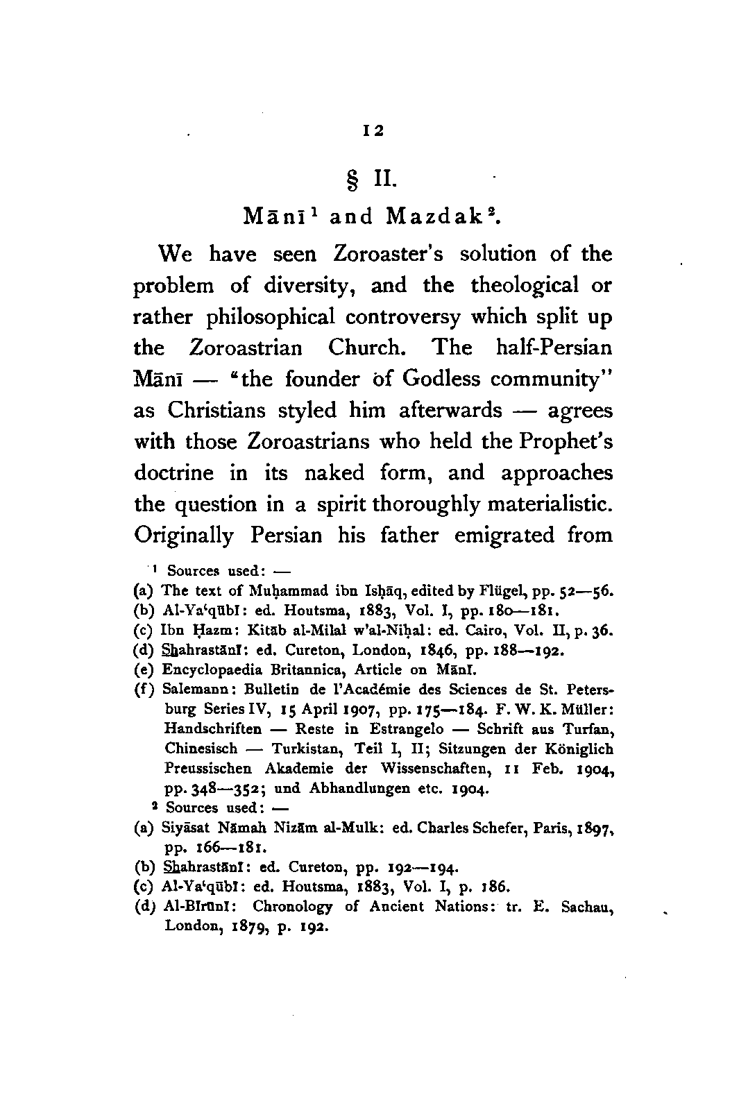 | Sec: II. | Mānī and Mazdak | 12 |
