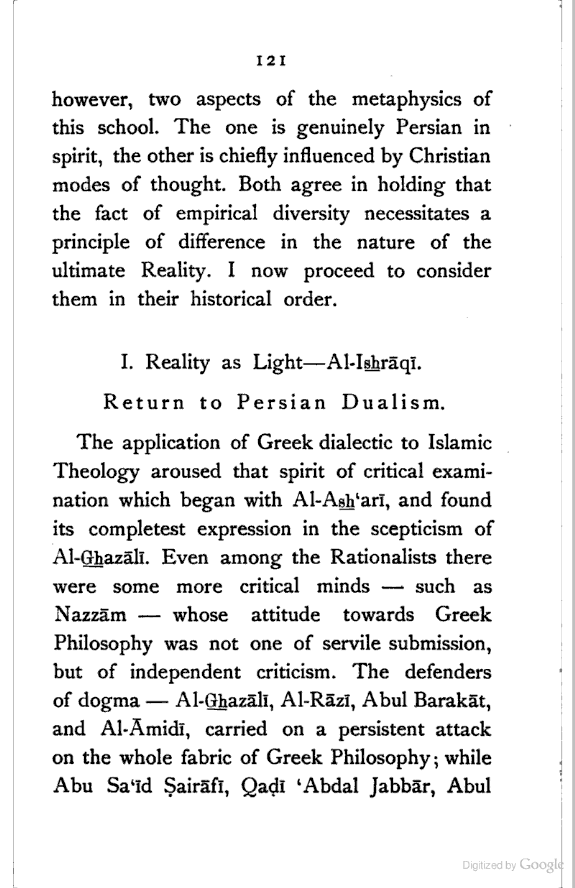 | (Return to Persian Dualism—Al-Ishrāqī). | ||