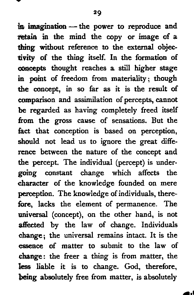 (3). The power which perceives individual ideas. The sheep thinks of the enmity of the wolf, and runs away from him. Some forms of life lack this power, e.g. the moth which hurls itself against the candle-flame.