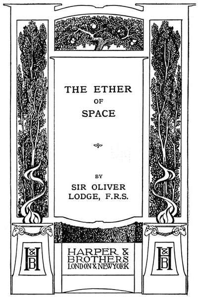 To lead up to and justify the idea of the reality and substantiality, and vast though as yet largely unrecognised importance, of the Ether of Space, the following chapters have been written. Some of them represent the expanded notes of lectures which have been given in various places—chiefly the Royal Institution; while the first chapter represents a lecture before the Ashmolean Society of the University of Oxford in June, 1889. One chapter (viz. Chap. II) has already been printed as part of an appendix to the third edition of Modern Views of Electricity, as well as in the Fortnightly and North American Reviews; but no other chapters have yet been published, though parts appear in more elaborate form in Proceedings or Transactions of learned societies.