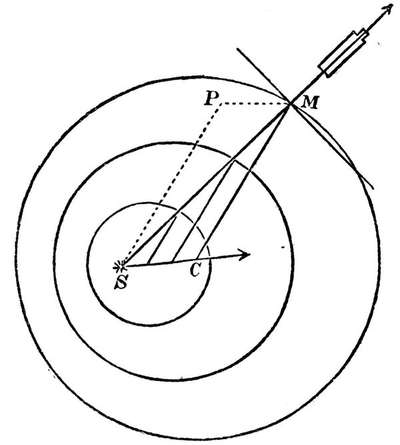"Qu. 22. May not Planets and Comets, and all gross Bodies, perform their motions more freely, and with less resistance in this Æthereal Medium than in any Fluid, which fills all Space adequately without leaving any Pores, and by consequence is much denser than Quick-silver and Gold? And may not its resistance be so small, as to be inconsiderable? For instance; if this Æther (for so I will call it) should be supposed 700000 times more elastic than our Air, and above 700000 times more rare; its[xiv] resistance would be above 600000000 times less than that of Water. And so small a resistance would scarce make any sensible alteration in the Motions of the Planets in ten thousand Years."