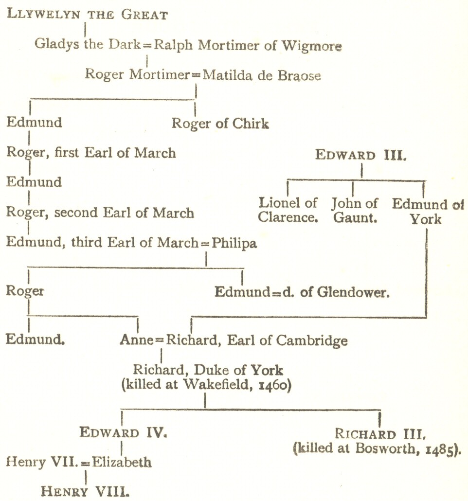 Edmund, third Earl of March and Philipa had issue Roger and Edmund = d. of Glendower.