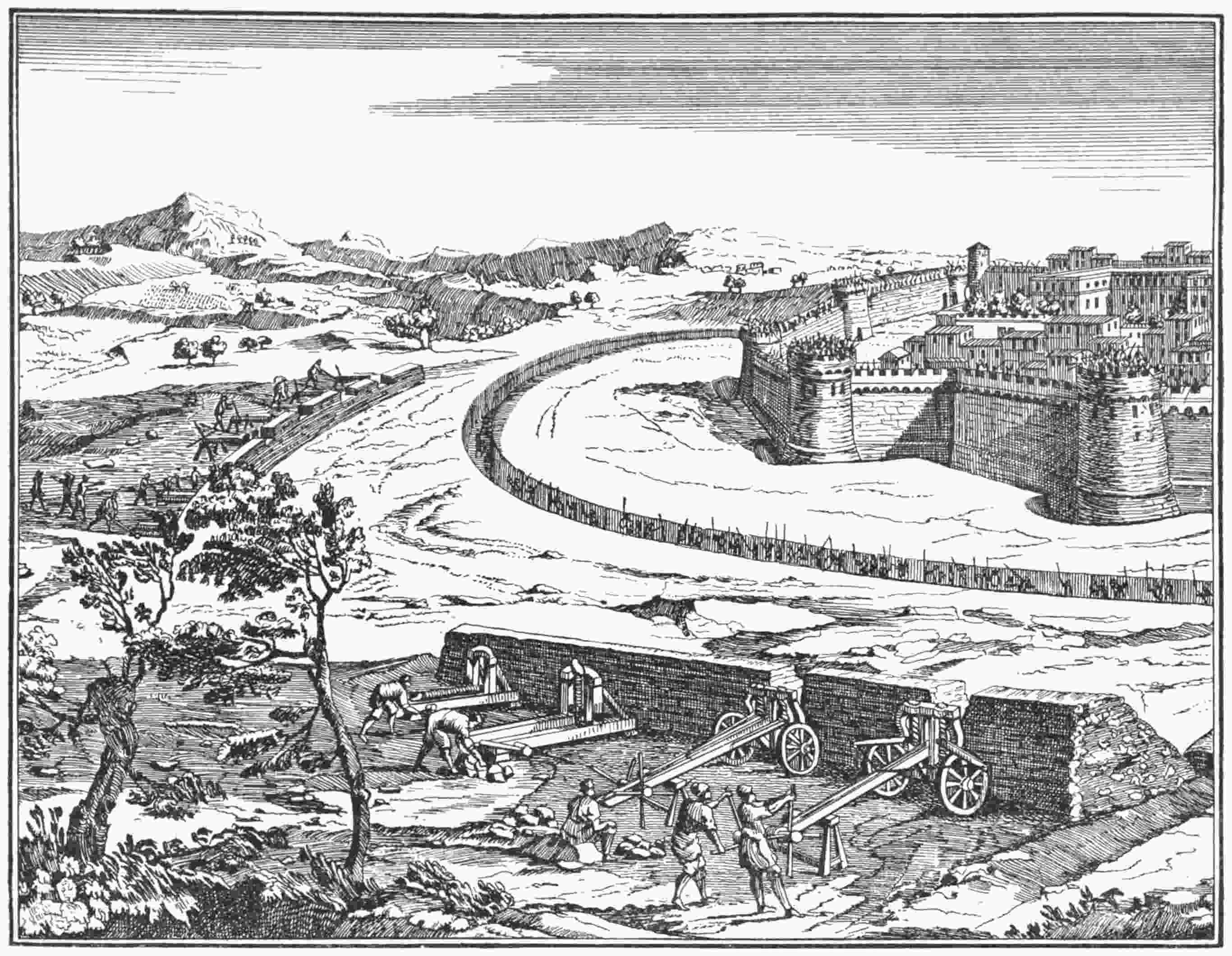 Criticism.—The picture is open to the spectator in order that he may see both defenders and besiegers at work.