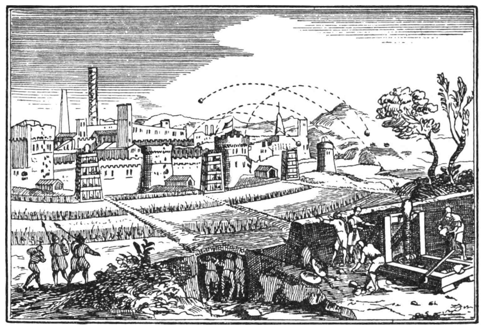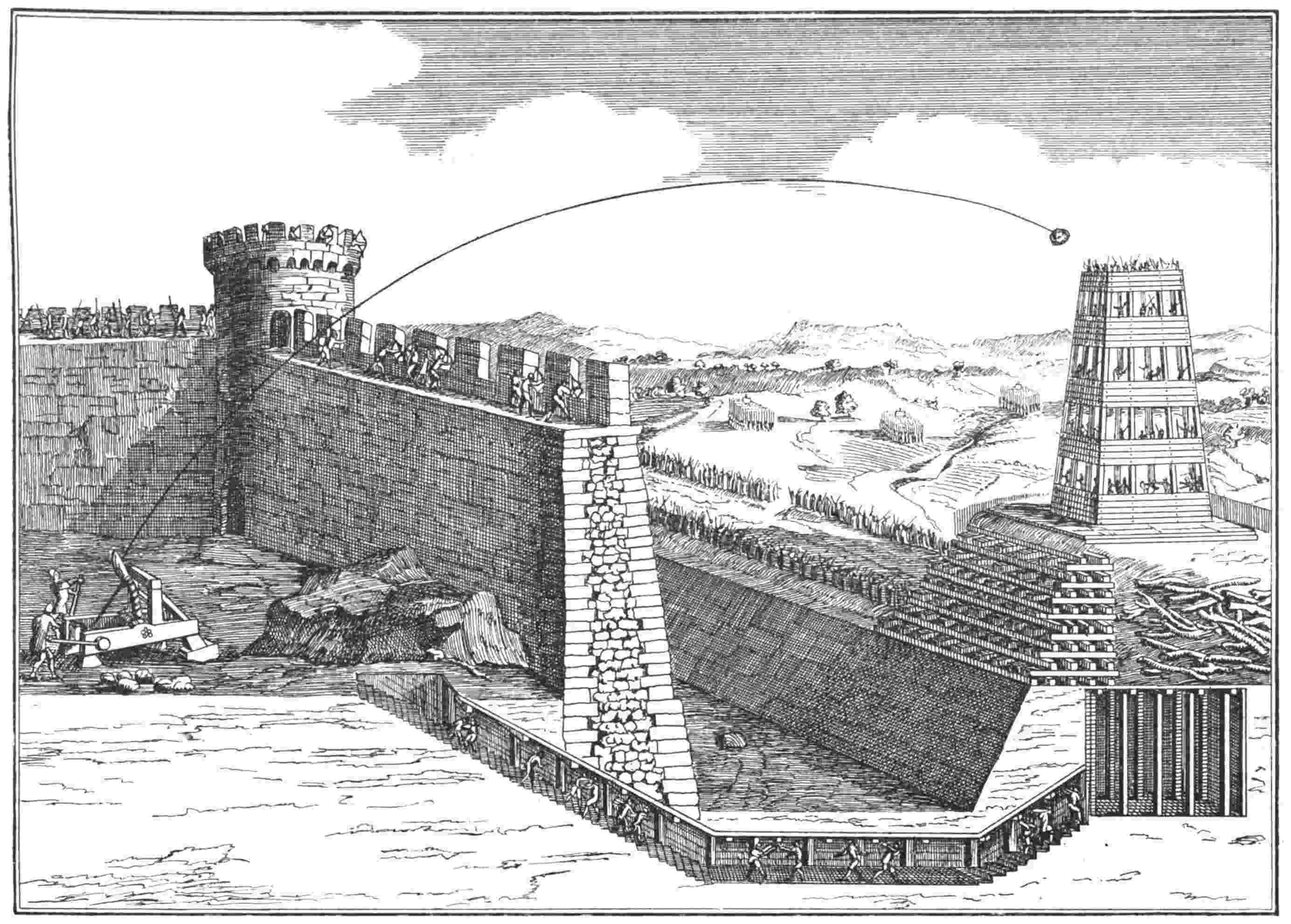 Fig. 1.—Besieging a fortified Town with a Battery of Catapults and Balistas.