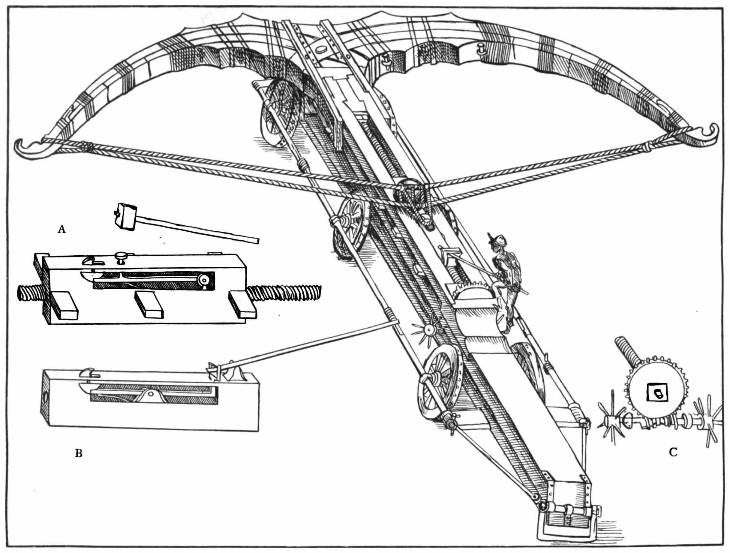 It is, indeed, impossible to find a complete working plan of any one of these old weapons, a perfect design being only obtainable by consulting many ancient authorities, and, it may be said, piecing together the details of construction they individually give.