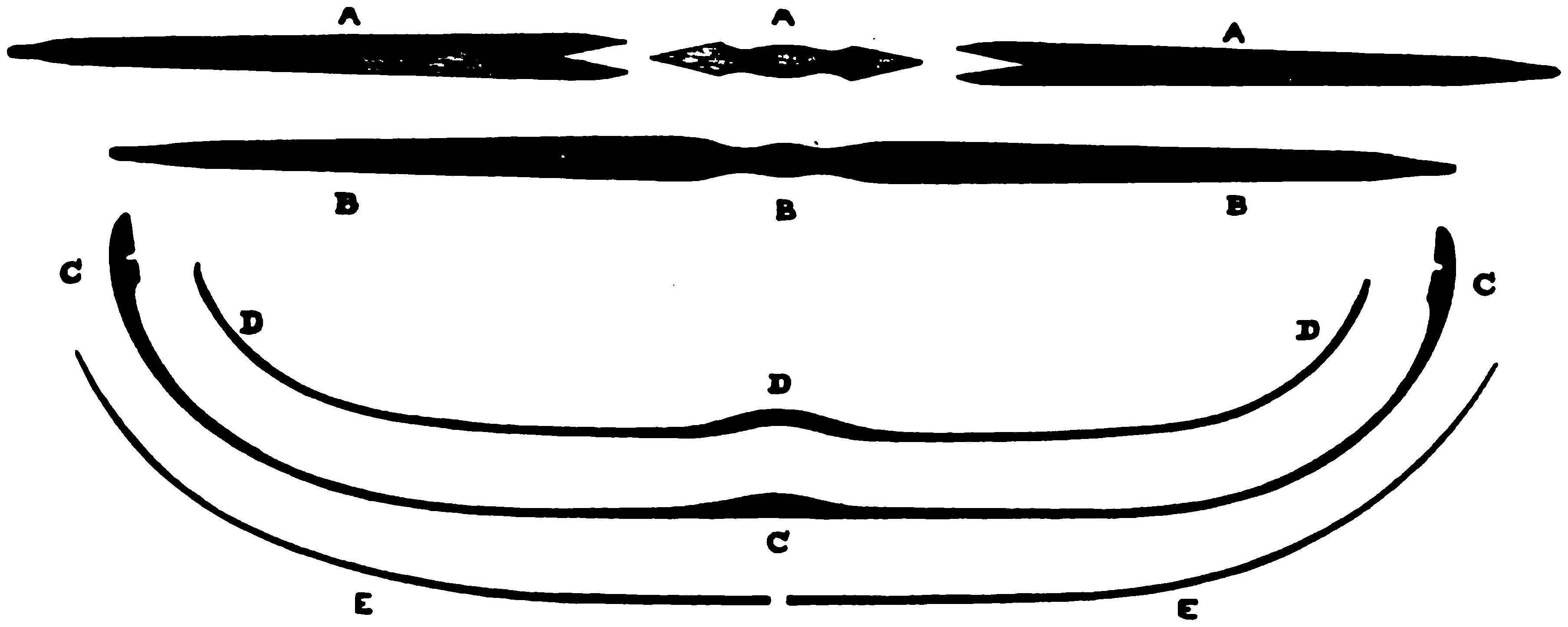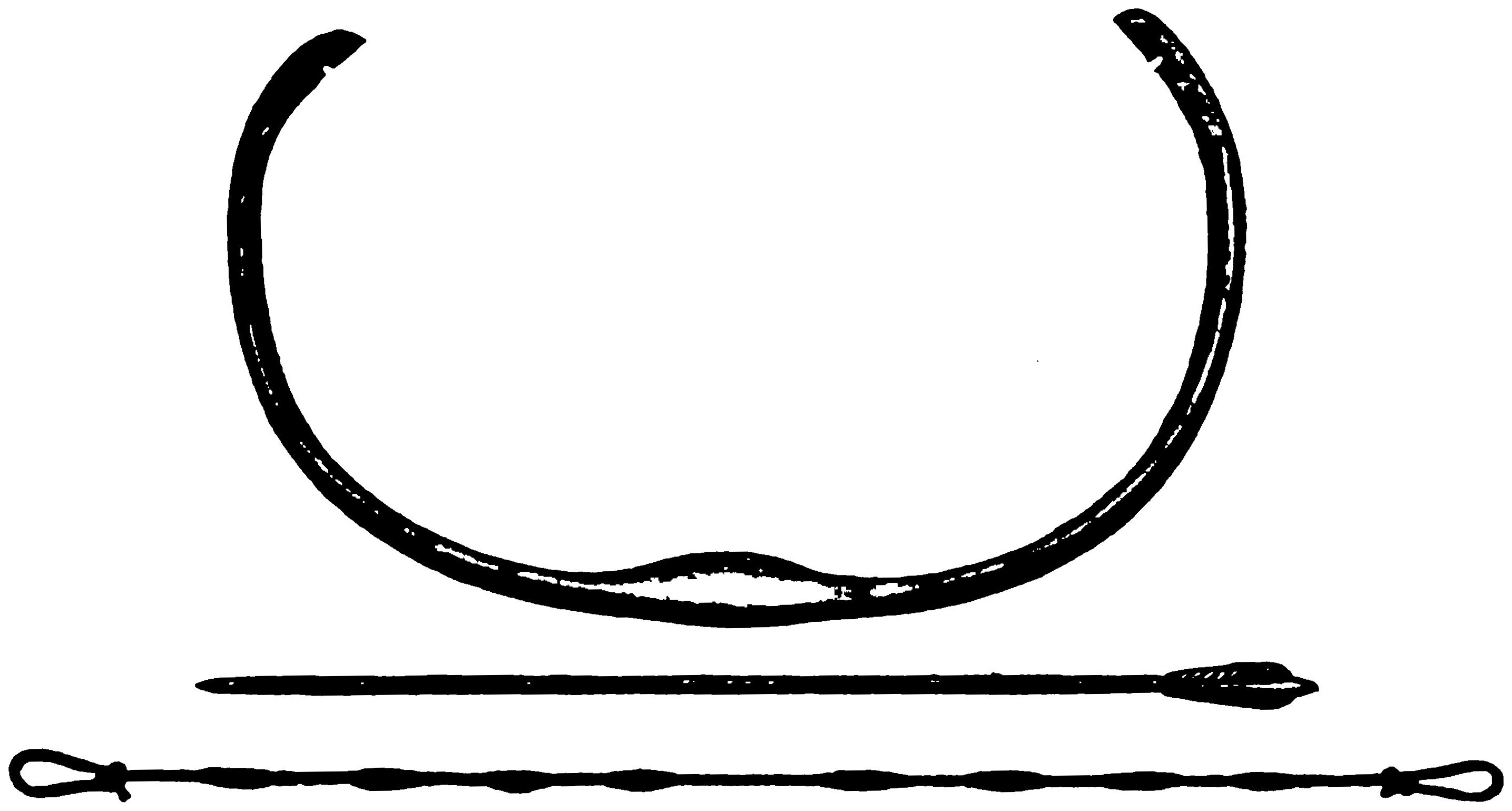 Some of the latter are so curved in their unstrung state that their ends nearly meet, and are so stiff, when strung, that I cannot draw them to more than half the length of a 25½-in. arrow. Fig. 15 shows a bow of this kind in my collection.