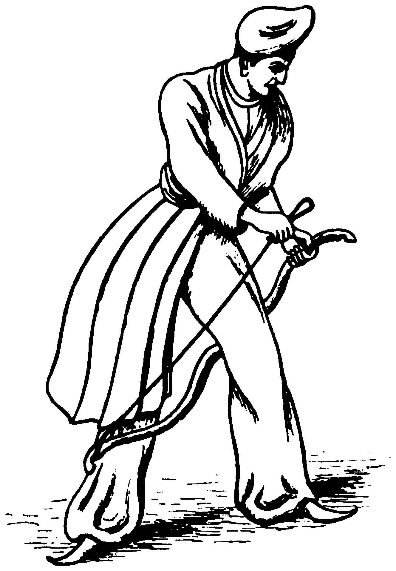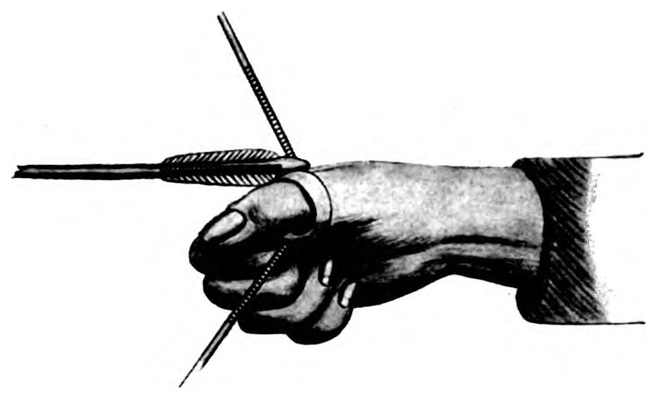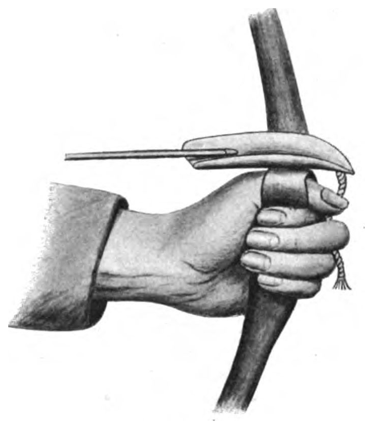 47 The long Turkish war arrow was drawn to the head as in an ordinary bow. The grooved horn was only used with the short and light flight-arrow.