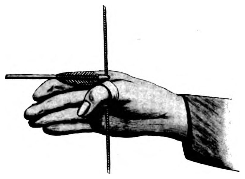The Turkish bow-string is ⅛ in. thick, and is merely served round with fine silk for 3 in. at its centre of length, with three or four shorter lashings at intermediate points.
