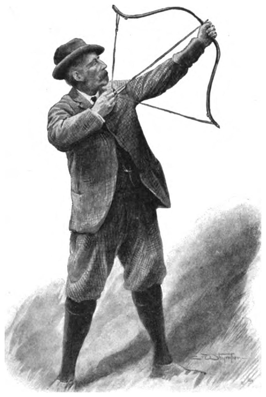 With the bow depicted in Fig. 1, I shot six arrows in succession to ranges121 exceeding 350 yards, the longest flights being 360, 365 and 367 yards. This public record was established July 7th, 1905, at an archery meeting held at Le Touquet, near Etaples in France. The ground selected for the trial was perfectly level; there was no wind, and the distances were accurately measured by several well-known members of the Royal Toxophilite Society who were present.
