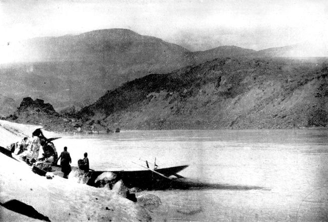 In a red-boat I was more cramped in space than I should have been in one of the large house-boats usually chartered by European travellers, but my rate of progress was much more speedy. My only shelter was a mat-awning, open at both ends, and as the thermometer rarely went above 45°, and at night often went down to 36°, I should have suffered some inconvenience from the cold had I not been able to exercise myself by scrambling along the rocks and boulders ahead of my trackers. The red-boat in which I travelled was, of course, specially detached for my use and exempted from the performance of its ordinary duties, though for part of the way it acted as escort to a naval officer who was going up the river in one of the ordinary house-boats to join his ship.