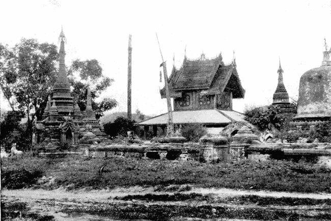 368 "Est-ce la colline qui a été façonée pour la pagode, est-ce la pagode qui a choisi la colline, si bien faites l'une pour l'autre, ravissantes d'ensemble? Qu'elle est jolie, cette réflexion blanche, tombant de haut dans le cristal de l'eau!"—Birmanie, par Mme. Quenedey, p. 218.