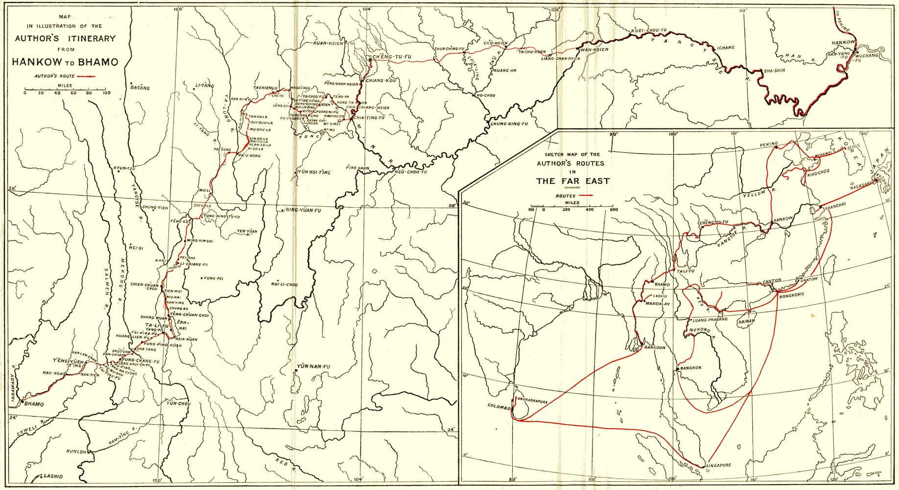 From the ethnological point of view the Chinese Far West—to which the greater part of this book is devoted—is one of the most interesting regions in the world, and presents problems the solution of which would settle many of the vexed questions relating to the origin and inter-relations of the2 Asiatic peoples. As for its geographical interest, it may be sufficient to say here that the principalities of Chala and Muli contain what are probably the highest spots inhabited by man on the face of the globe, and that several of the passes crossed by my little caravan are loftier than the highest of the passes existing along the route traversed by the British expedition to Lhasa. My own contributions to geographical and ethnological lore are of the slenderest; but if I can persuade some of my readers that Tibetan Ssuch'uan and western Yunnan are worth visiting, be it only for the glory of their mountain scenery, I shall consider that my book has fulfilled the most useful purpose to which it aspires.