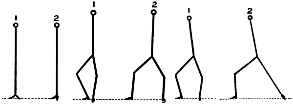 Two.—Advance the right foot smartly about 20 inches in front of and in line with the right heel, and rest the whole weight of the body upon both haunches and legs.8