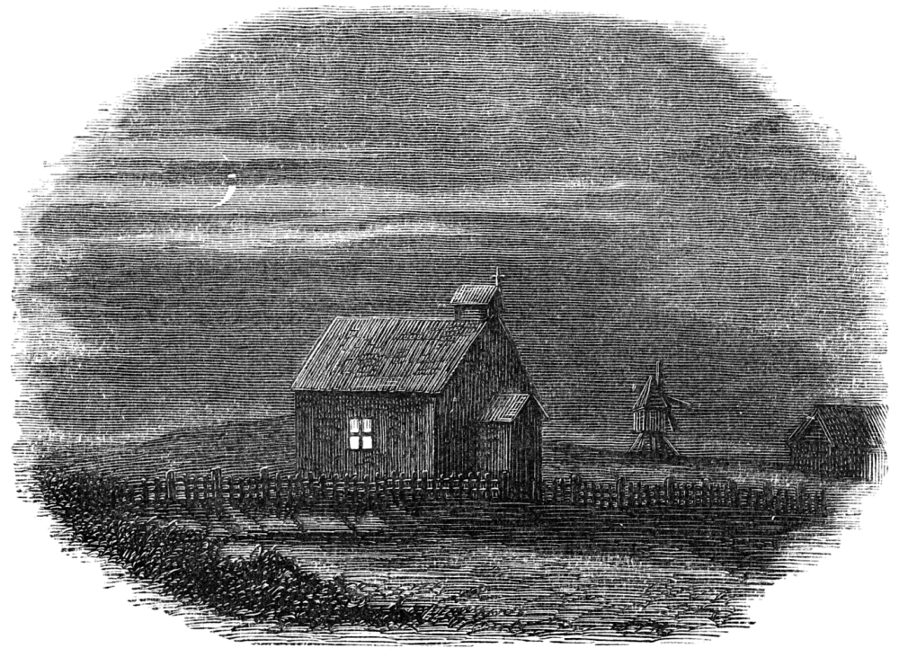 “After attending service at the church of Reikiavik on Sunday, I did myself the honour to call upon the Bishop of Iceland, an excellent, courteous old gentleman, who, if he does not dwell, like the Psalmist, in a ‘house of cedar,’ dwells, like his flock, in a house of Norwegian fir. He could not speak English, but he spoke French well. To him I mentioned the phenomenon we had seen, believing that he was as likely as any one to know whether or not it was new. He told me that he knew the district well, but that there was no Geyser there at his last visit; that what we had seen, therefore, was quite new. In answer to my inquiry whether there had been any recent volcanic disturbance in the island, he informed me that there had been a violent earthquake in the northern region about the middle of April. This outburst of a new Geyser (which we observed in full play on our homeward voyage on Tuesday, June 11) and the earthquake in the north, seem premonitory of an eruption either of Hecla, or of some other of the other seven mountains which Keith Johnston, in his Physical Atlas, marks as active volcanoes. I hope we shall shortly have a description of any such occurrence, if it do take place, from the graphic pen of Captain Burton, whose society made our outward voyage a rare treat.—I am, etc.