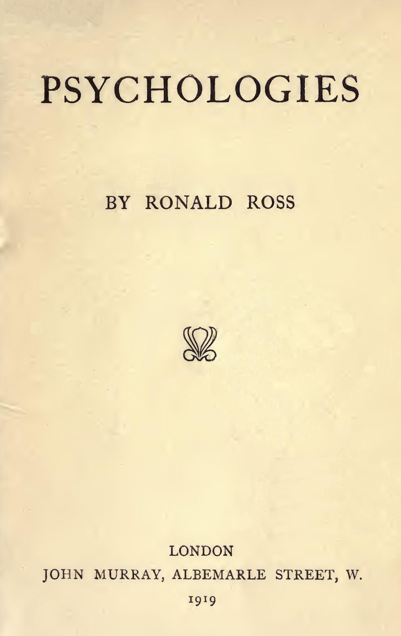 “Sir Ronald Ross’s little book, ‘Philosophies,’ has never received much attention in the press, but it contains some of the best of contemporary verse.”—Solomon Eagle, in The New Statesman.