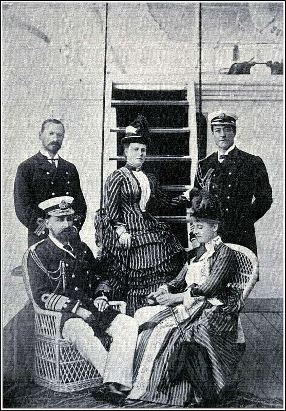 After the dinner on board the Emperor’s yacht, the Standardt, a serenading party of singers came off from the shore in a tug, which was then anchored close to the Royal Yachts. They sang deliciously while the guests were smoking their cigars on deck. Of course it was still broad daylight, so that the Royalties were in easy view of the singers, and at the outside a couple of hundred yards off. This appeared to me to be a very risky proceeding, so I sent for an old friend of mine, (now Sir Patrick Quinn), then, the Special Detective Officer in charge of the King, to ask him his opinion. I pointed out to him that in broad daylight, as it was, any disaffected person on board the tug, if prepared to give up his own life, could make a certainty of shooting any member of the two Royal Families that he liked to select. Quinn’s answer was, “You need not fuss, Captain; there is not a man or a woman on board the tug who has not been stripped by the Russian Police and searched for arms before being embarked, and when it comes to searching, the Russian Police do not make mistakes.”