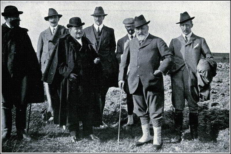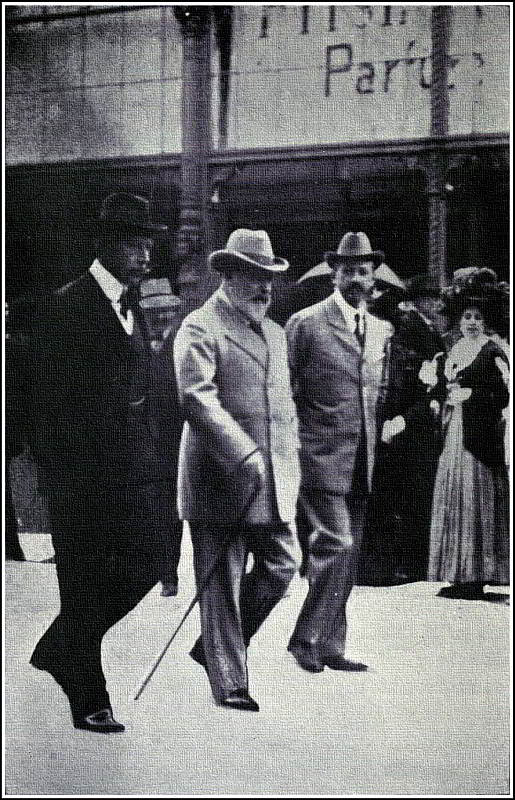 In March 1909, I once more found myself en route to Biarritz in attendance on King Edward. Only a very short stay was made in Paris, just time for a luncheon with the President at the Élysée, as the King was anxious to get to the South. They were pleasant weeks, those five or six that were spent there, for Biarritz was very full and gay, and I came in for some agreeable and interesting motor trips. Amongst others, was an excursion to Pau to see the Wilbur Wright flying-machine. Mr. Wilbur Wright had, I fancy, chosen Pau for his experimental flights because not only is there a nice flat tract of country just outside the town, but Pau possesses, and also thoroughly deserves, the reputation of being one of the most windless places in Europe. When flying-machines were in their extreme infancy, a very moderate breeze was enough to prevent an aviator from making an ascent. On this occasion the elements were kind, and Mr. Wright made two or three ascents, on one occasion taking his sister up with him. In those earlier days of flying, the great difficulty was to get the machine off the ground, and it was met by a combination of about a hundred yards of light railway to take the wheels of the machine, and the erection of a shears with a dropping weight to give the plane the necessary cant-up in the air. Another interesting motor excursion was made to San Sebastian. It is a lovely drive across the Spanish frontier, and full of interest to Englishmen, with its historic memories of Wellington’s advance into France. Besides being a pleasant excursion it gave the King an opportunity of paying an informal[364] visit to King Alfonso, who was then in residence at the Royal Villa at San Sebastian.