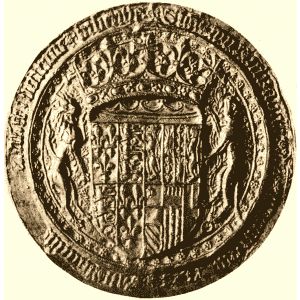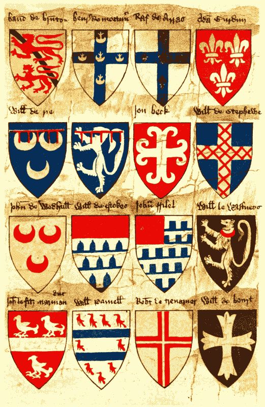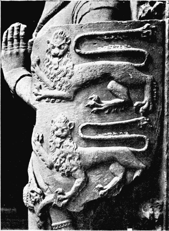 Any student, however, who has become interested in a single shield, or in the look of the thing as seen in a collection of fine examples of heraldry such as are illustrated in this volume, should be able to master the main principles in an hour or two. The curious terms are only old-fashioned; they are used, so far as they are necessary, not of malice, but because it is of the essence of heraldry that everything shall be so strictly defined that a few words may represent a shield of arms as surely as a picture. Hence everything has a name, everything is clear, sharp, and bright, the colours are few, the forms must be large and simple. Even the seemingly arbitrary dictum that 'no colour must be put on colour or metal on metal' may probably have arisen from the fact that when gilding or silvering was used on a shield it would form a perfect foil for[Pg 10] colours, but as they reflected light in the same way, they could not be distinguished if used one on the other. Even yellow pigment on white would not tell clearly at any distance; the maxim is merely a rule for the sake of distinctness. Again, the curious vigorous drawing of beasts and birds with the eyes staring and the feet spread out was not the result of a desire to be quaint, but arose naturally from the same need of being clear. A good naturalistic drawing of a lion would be useless on a flag. Granted the special needs of heraldry, it developed in a perfectly understandable way.