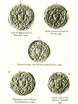 | Armorial Bearings of Ladies; Use of Lozenges and Roundels as variant forms of Shields; Arms of Men on Lozenges; Combinations of Shields with Lozenges and Roundels of Arms on Seals and in Embroideries. | ||