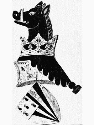 II. That he could omit the crest if he wished, but if he elected to use it, the crest ought certainly to be set upon a helm, which should face the same way as the crest; the crested helm might also be flourished about with such mantling as the sculptor thought proper.