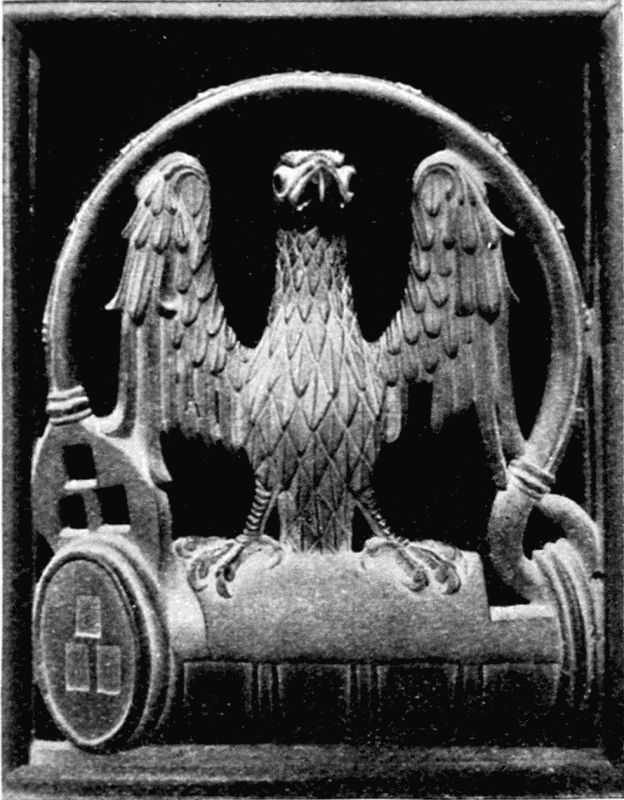 III. That in the particular drawing none of the trophies was heraldic. The sculptor accordingly could omit the whole, if he were so minded, or could dispose about the arms and crested helm any such other trophies of like character as would in his judgment look well or be appropriate.