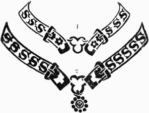 | Crowns and Coronets; Introduction of Coronets; Coronets of Princes, Dukes, and Earls; Bequests of Coronets; Illustrations of Coronets and Crowns; Collars and Chains; Collars of Orders; Lancastrian Collars of SS; Yorkist Collars of Suns and Roses;[Pg 18] Tudor Collars of SS; Other Livery Collars; Waits' Collars; Collars and Chains of Mayors, Mayoresses, and Sheriffs; The Revival of Collars; Inordinate Length of modern Collars. | ||