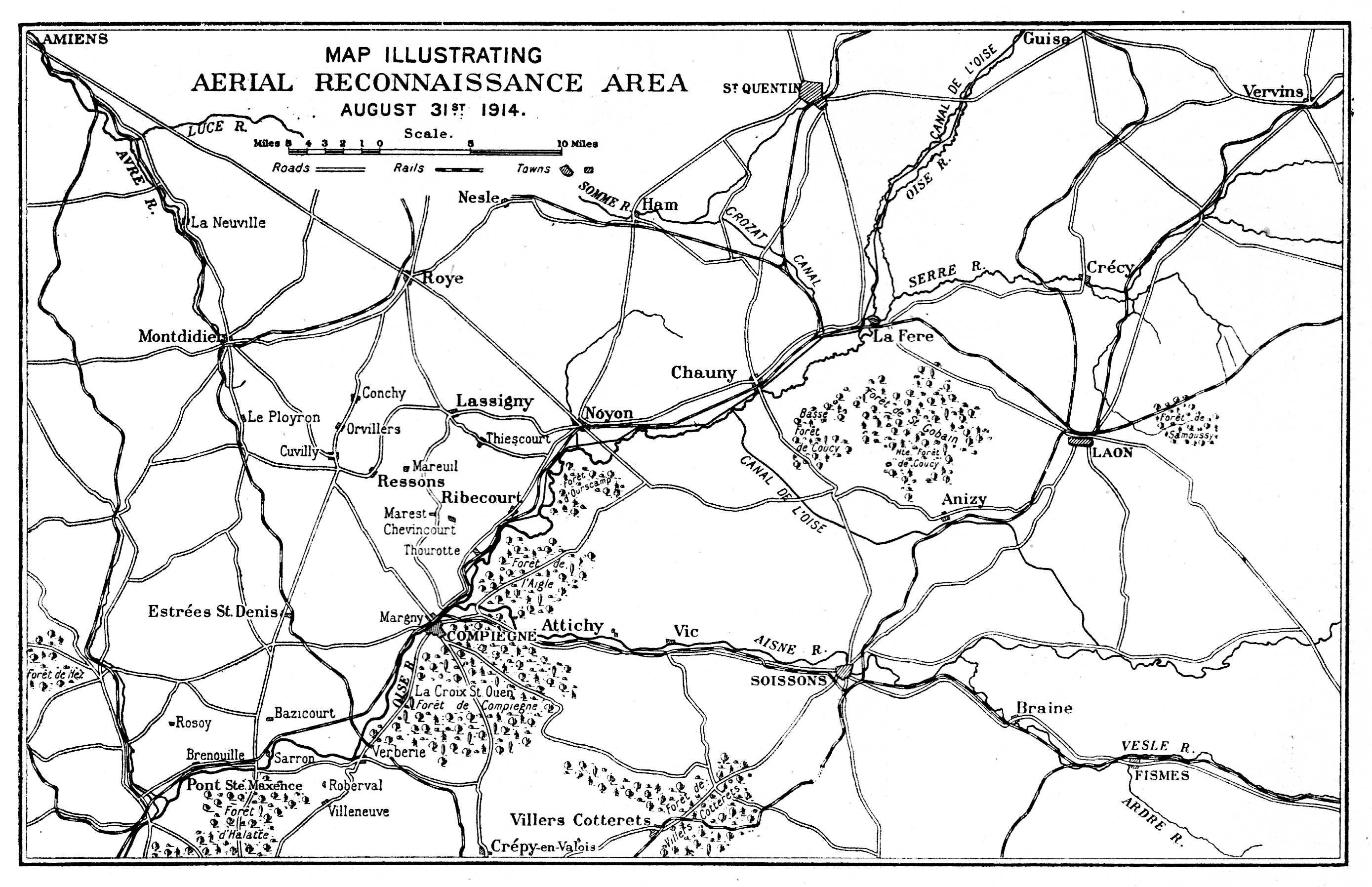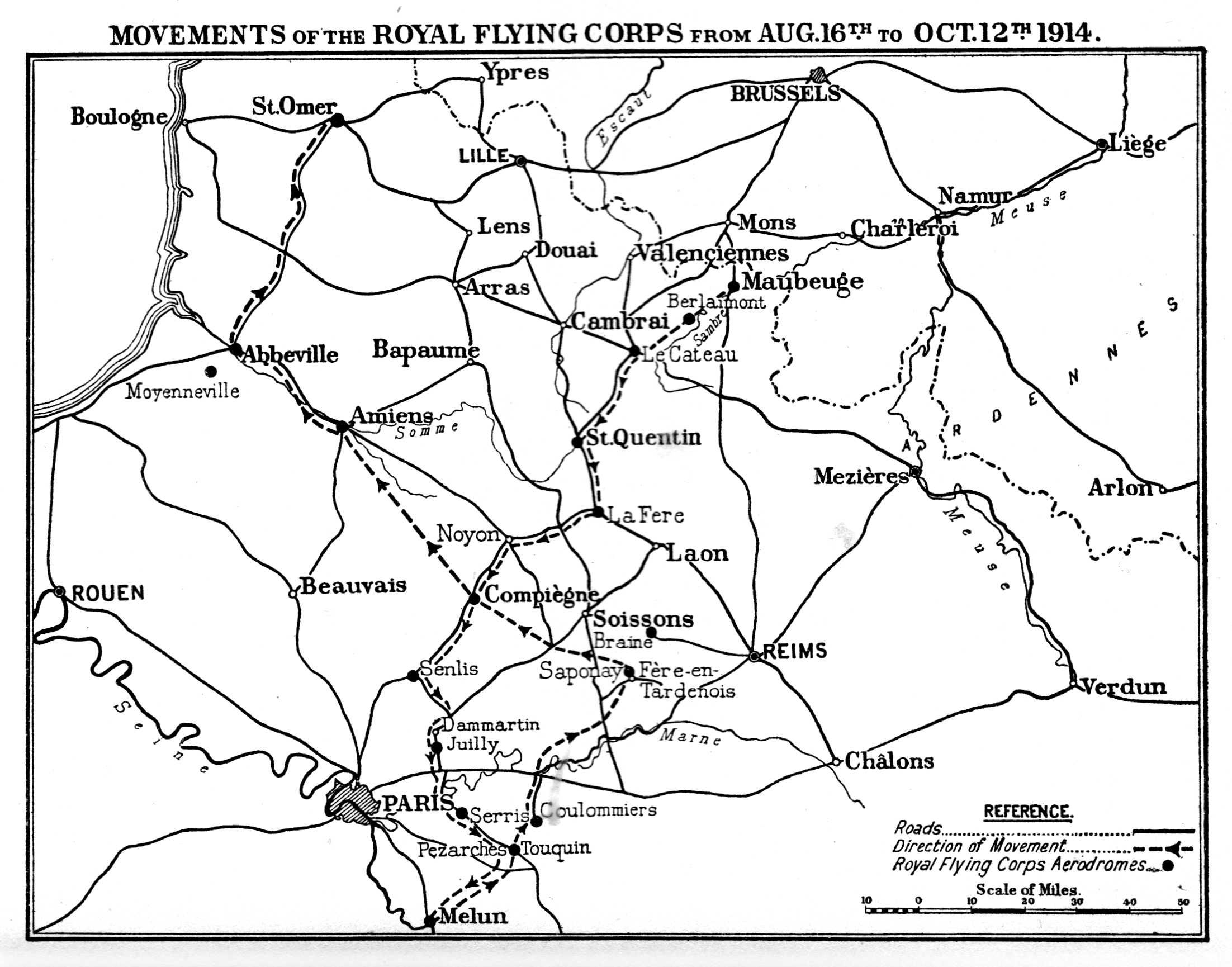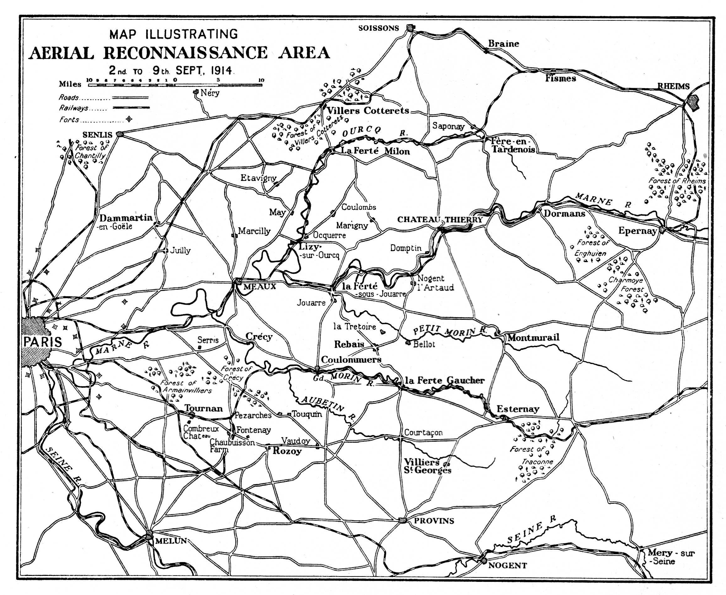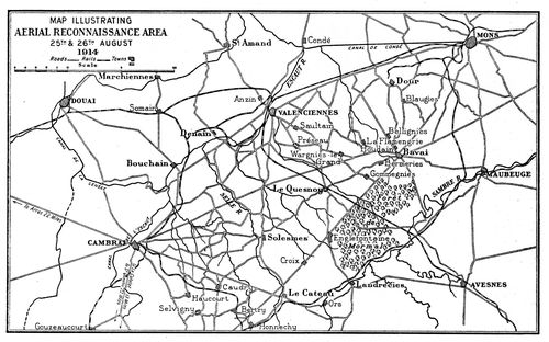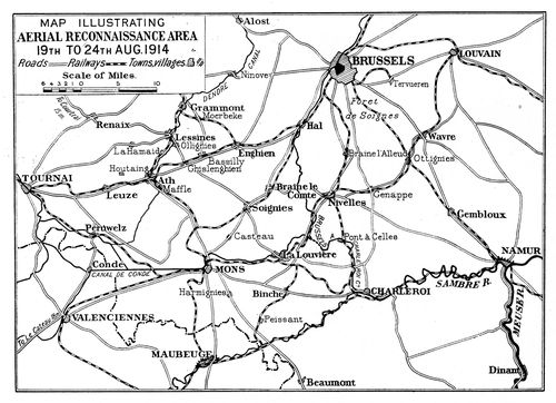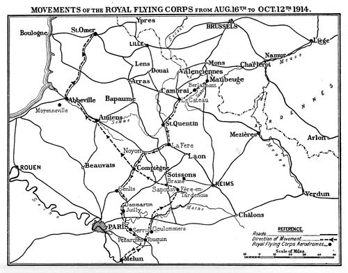 The Prussian doctrine of war. The Serajevo murders. Austria and Serbia. Germany refuses mediation and makes war on Russia and France. Great Britain declares war, August 4, 1914. The cause of civilization. The German plan of campaign. The British army in France. Mobilization of Royal Flying Corps. The Aircraft Park. The squadrons. List of officers of the four squadrons. The machines. Amiens. Maubeuge. Flying Corps fired on by British troops. Union Jack markings. The German wheel through Belgium. French strategy. The retreat from Mons. First aerial reconnaissances. The reconnaissances of August 22. Sergeant-Major Jillings wounded in the air. Lieutenants Waterfall and Bayly brought down. Aerial reconnaissance on its trial. Early mistakes. List of places occupied by H.Q., R.F.C., during retreat. German movements observed. A typical air report. The western wind. The finding of Sir Douglas Haig. Help to General Smith-Dorrien at Le Cateau. The detection of enveloping movements. The British army escapes from von Kluck. Von Kluck wheels towards the Oise. His change of direction observed from the air. One of the reports. British retreat continues. The Sixth French Army on the Ourcq. Summary of British aerial work during the retreat. Alarms. Experiences of pilots. High spirits. Early bomb-dropping. First German machine seen by British at Maubeuge. Fighting in the air. German machines brought down. The battle of the Marne. Machines assigned to corps commands, September 6.