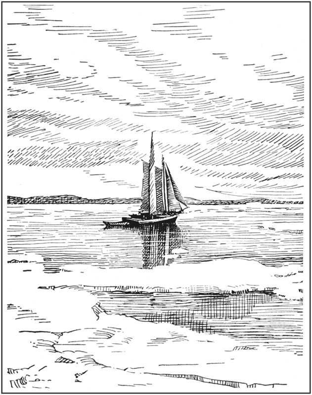 When darkness fell, however, very little progress had been made. The wind kept shifting against the schooner, and all hands could still make out the distant lights of home [184]twinkling like tiny stars, apparently not more than a couple of miles under their lee.
