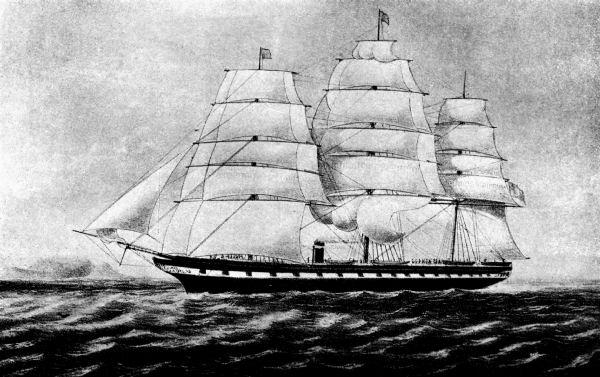 I had gone out to Australia in the celebrated clipper “Red Jacket.” At Sydney I took my passage home in a small barque of 400 tons, called “Queen of the Avon.” I was the only passenger, and selected this little ship purposely that I might learn something of the practical working of a ship at sea. I told the Captain of my wish, and found him quite sympathetic, and he offered to teach me navigation; but when I showed him the log I had kept on the “Red Jacket,” and the many observations I had taken and worked out, he said he felt he could not teach me much. He, however, agreed to my taking my trick at the wheel, and going aloft when reefing or making sail.