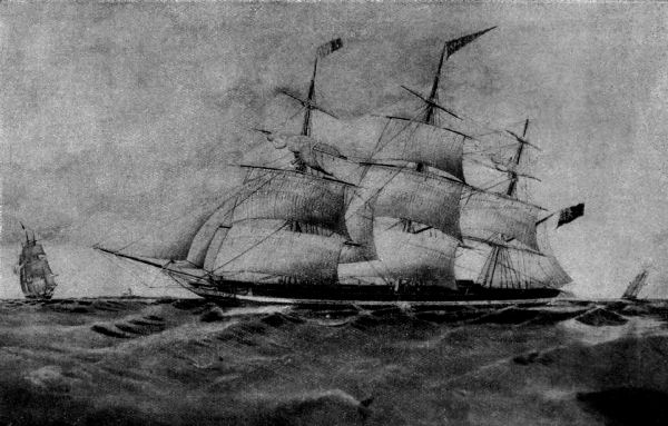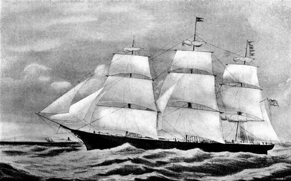 The first clipper ship constructed for the Australian trade was the “Marco Polo,” of 1,622 tons. She was built in 1851, at St. John’s, for James Baines & Co., of Liverpool, and she was the pioneer of the famous Australian Black Ball Line. The “Marco Polo” was a handsome ship, built with a considerable rise of floor and a very fine after end, and carrying a large spread of canvas. She made some remarkable passages under the command of Captain Forbes, who did not hesitate to shorten the distance his ship had to travel by sailing on the great circle, and going very far south. The [Pg 11] “Marco Polo” may be said to have set the pace in the Australian trade. She was quickly followed by such renowned ships as the “Lightning,” the “James Baines,” the “Sovereign of the Seas,” and the passages of these ships created as much public interest as those of our Atlantic greyhounds do to-day. We had also the White Star Line of Australian clippers, which owned the “Red Jacket,” the “Blue Jacket,” and the “Chariot of Fame.” The “Red Jacket” made the record passage of 64 days to Melbourne, and was one of the most famous of the American built clippers.