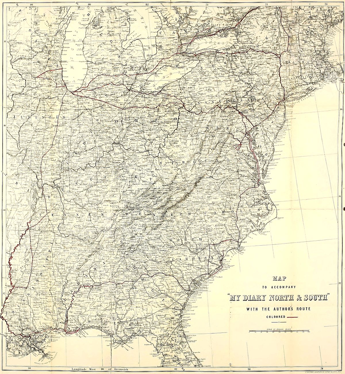 | Off to the railway station—Railway carriages—Philadelphia—Washington—Willard’s Hotel—Mr. Seward—North and South—The “State Department” at Washington—President Lincoln—Dinner at Mr. Seward’s | 43 |