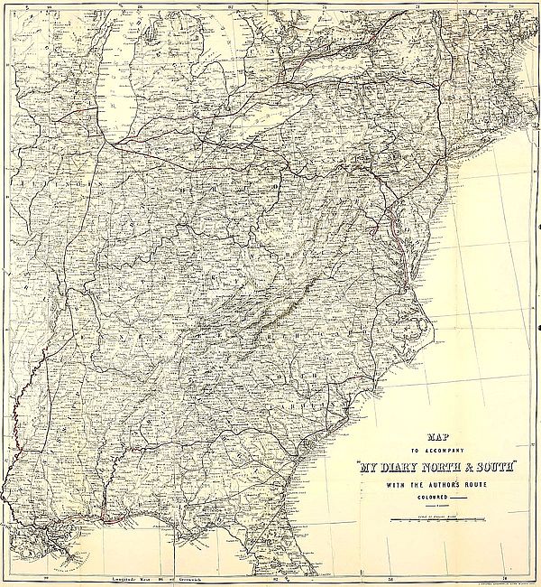 The day I landed at Norfolk, a tall lean man, ill-dressed, in a slouching hat and wrinkled clothes, stood, with his arms folded and legs wide apart, against the wall of the hotel looking on the ground. One of the waiters told me it was “Professor Jackson,” and I have been plagued by suspicions that in refusing an introduction which was offered to me, I missed an opportunity of making the acquaintance of the man of the stonewalls of Winchester. But, on the whole, I have been fortunate in meeting many of the soldiers and statesmen who have distinguished themselves in this unhappy war.