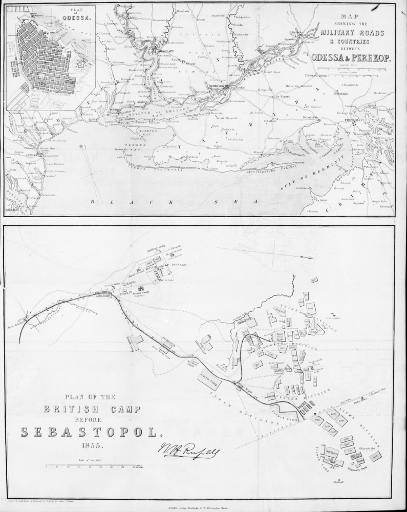 [22] It was, as I have since heard, caused by a barrel of tar at the top of the shears, which was placed there in order to light up the dockyards, where the Russians were embarking their wounded and stores for the north side.