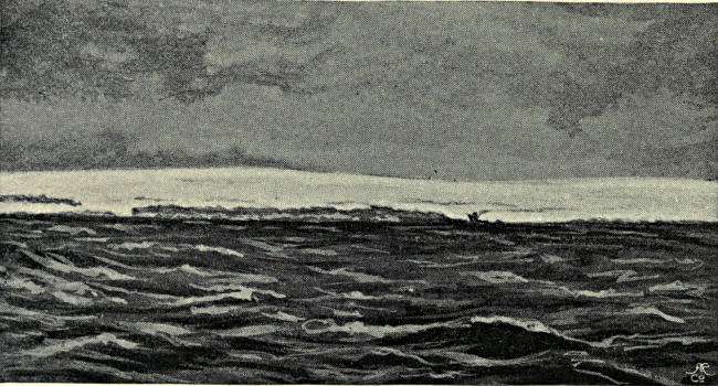 Of course, in such a vague illumination there are no shadows. The light comes equally from everywhere. To keep a straight course requires[32] continual attention. The compass must be referred to continually.