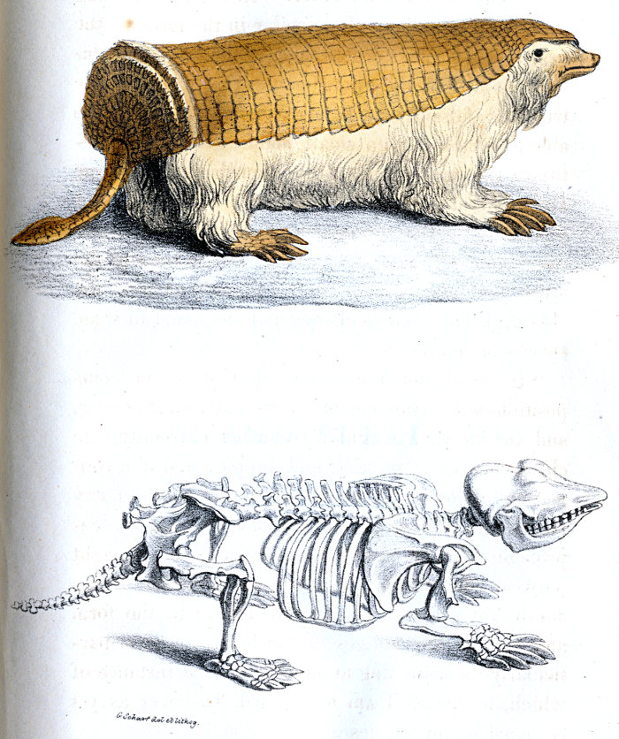 To the account of the Megatherium, and other extinct animals, I am now enabled, by a delay which has unavoidably occurred in the publication of this volume, to insert the representation of another extinct monster, the Glyptodon, which has been very recently discovered at no great distance from the city of Buenos Ayres, apparently in a very perfect state, and which I trust ere long will be in England. Mr. Owen, of the College of Surgeons, has been good enough to draw up for me the description of it, which I have added in a note at the end of the tenth chapter.