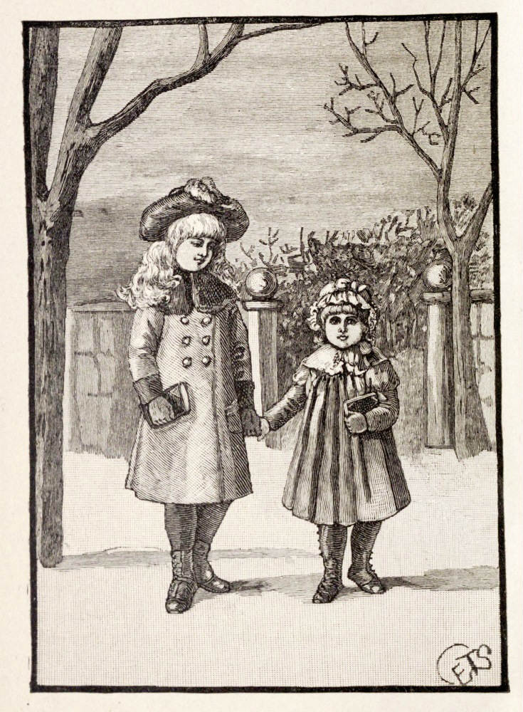 Nobody thought of Kittyleen's staying any longer than to dinner and supper; but there was never any certainty about the Garland children's visits, especially when it began to storm. It began now at eleven o'clock, and snowed all day without ceasing; and then the wind rose, and blew the flakes [Pg 12]east and west and north and south, till the men in the streets could hardly keep their hats on their heads, much less hold an umbrella.