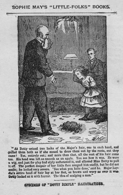 Flaxie Frizzle was one of the youngest, but led off in most of the games. She was little Eva, and died on a bed of grass “elegantly,” while everybody else groaned and howled, especially poor Uncle Tom. Uncle Tom was Milly, in a black mask of Preston’s, which had been played with till it was cracked in fifty places, and made Uncle Tom look about two hundred years old.