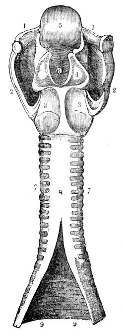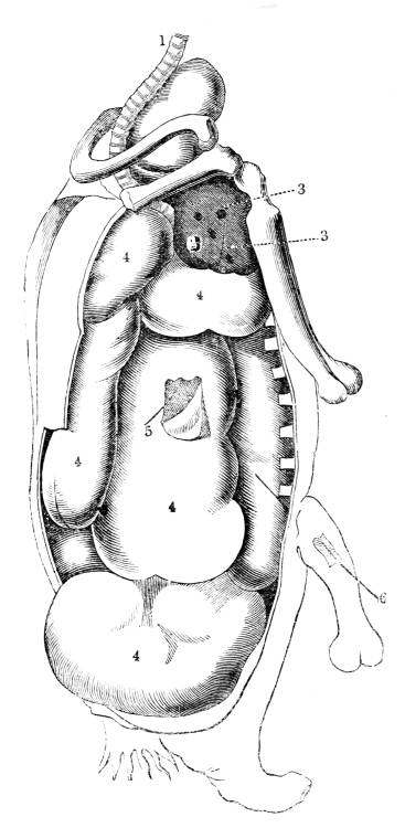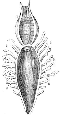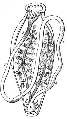 1. Mouth; 2. salivary sacs; 3. intestine; 4. cloaca; 5. ramified tubes, conveying water for respiration into the interior of the body.