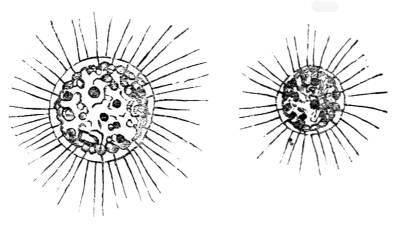 336. But in some tribes even of these simple creatures there is visible by the microscope an afflux of their nutritive juices to the delicate pellicle that envelops them, in the form of a vascular net-work, in which there appears to be a motion of fluids, probably the nutritive juices flowing in the only position of the body in which they could come into direct contact with the surrounding element. In some more highly advanced tribes, as in wheel animalcules, there is an obvious circulating system in vessels near the surface of the skin. In other tribes, the internal surface constituting the alimentary canal, is of great extent and width, and forms numerous cavities which15 are often distended with water. In this manner a portion of the internal, as well as the external surface is made contributary to the function of respiration, and this extended respiration is conducive to their great and continued activity, to their rapid development, and to the extraordinary fertility of their races.