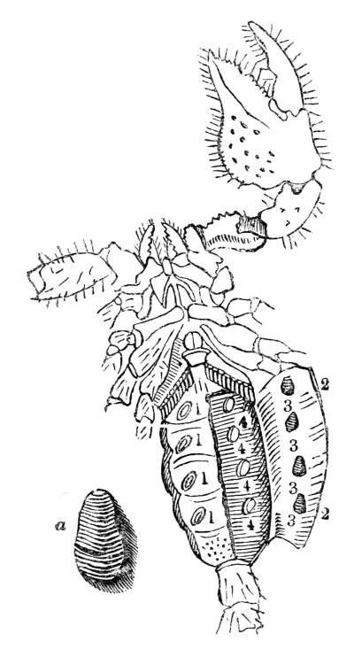 340. Instead of branchiæ in the form of ramified tufts, the ascending series of animals, namely, the higher crustacea, possess branchiæ composed of numerous, delicate, thin laminæ or leaves, divided from each other, yet placed in close proximity, like the teeth of a fine comb, whence this arrangement is termed pectinated. Over the blood-vessels of the system spread out on these delicate, fringed, pectinated leaves, the water is driven in constant streams.