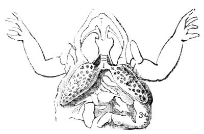 348. But as if even this extent of apparatus were insufficient to afford the amount of respiration required by the system of the fish, the entire surface of its body, which in general is naked and highly vascular, respires like the branchiæ. Moreover, many fishes swallow large draughts of air, by which they aërate the mucous surface of their alimentary canal, which also is highly vascular; and still further, numerous tribes of these animals are provided with a distinct additional organ, a bag placed along the middle of the back filled with air. Commonly this air bag communicates with some part of the alimentary canal near the stomach, by means of a short wide canal termed the ductus pneumaticus, but sometimes it forms a simple shut sac without any manifest opening; at other times it is divided and subdivided in a perfectly regular manner, forming extended ramified tubes; while at other times its ramifications present the appearance of so many pulmonary cells. It is the rudiment of the complex lung of the higher vertebrata, and it assists respiration;28 although since in some tribes it contains not atmospheric air but azote, it is without doubt subservient to other uses in the economy of the animal.