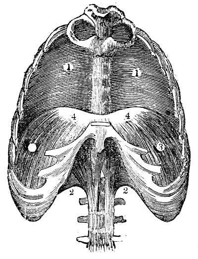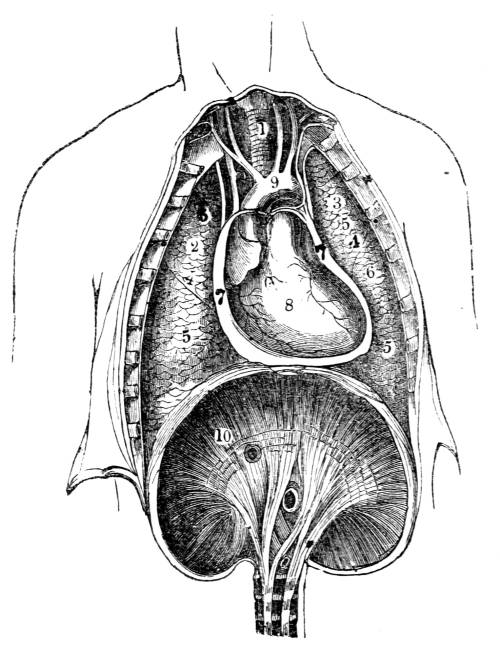 Respiration in the plant; in the animal—Aquatic and aërial respiration—Apparatus of each traced through the lower to the higher classes of animals—Apparatus in man—Trachea, Bronchi, Air Vesicles—Pulmonary artery—Lungs—Respiratory motions: inspiration; expiration—How in the former air and blood flow to the lungs; how in the latter air and blood flow from the lungs—Relation between respiration and circulation—Quantity of air and blood employed in each respiratory action—Calculations founded on these estimates—Changes produced by animal respiration on the air: changes produced by vegetable respiration on the air—Changes produced by respiration on the blood—Respiratory function of the liver—Uses of respiration