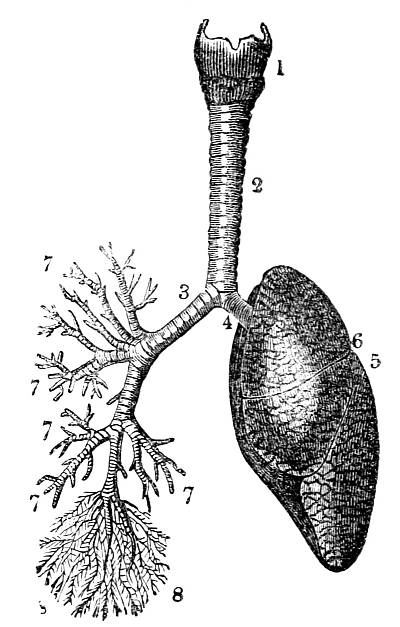 Respiration in the plant; in the animal—Aquatic and aërial respiration—Apparatus of each traced through the lower to the higher classes of animals—Apparatus in man—Trachea, Bronchi, Air Vesicles—Pulmonary artery—Lung—Respiratory motions: inspiration; expiration—How in the former air and blood flow to the lung; how in the latter air and blood flow from the lung—Relation between respiration and circulation—Quantity of air and blood employed in each respiratory action—Calculations founded on these estimates—Changes produced by animal respiration on the air: changes produced by vegetable respiration on the air—Changes produced by respiration on the blood—Respiratory function of the liver—Uses of respiration.