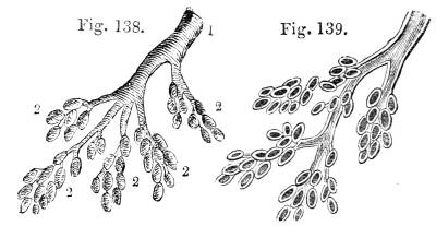 319. A leaf, then, consists of a double congeries of vesicles containing organic particles, penetrated by woody fibre and air vessels (which is probably the true nature of the spiral vessels), the whole being enclosed within a hollow stratum of air-cells.