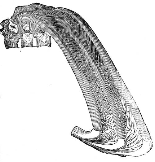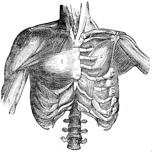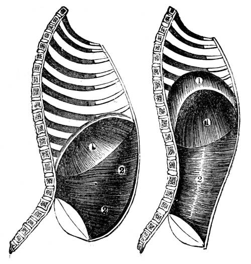 346. Through this extended surface the whole blood of the system must circulate, and every point of it must be unceasingly bathed with fresh streams of water. To generate the force necessary for the accomplishment of these objects, an increase of power must be communicated both to the circulating and to the respiratory apparatus. Neither the contractile power of the vessels by26 which in some of the simpler animals the nutritive fluid is put in motion, nor the contraction of the rudimentary heart by which in creatures somewhat higher in the scale a more decided impulse is given to the blood, are sufficient. A muscular heart, capable of acting with great power, is now constructed, which is placed in such a position as to enable it to propel with velocity the whole blood of the body through the myriads of capillary vessels that crowd every point of the surface of the branchial leaflets. To bring the water with the requisite degree of force into contact with this flowing stream, the apparatus of cilia is wholly inadequate. The water entering by the mouth, is driven with force, by the powerful muscles of the thorax, through apertures that lead to the branchial cavities. At the instant that the branchial leaves receive the currents of water through the appropriate apertures, the cartilaginous or bony arches which sustain the leaves, separate to some distance from each other, and to that extent expand the leaves and proportionally increase the surface exposed to the water: at the same time, the rush of water through the leaves unfolds and separates each of the thousand minute filaments of which they are composed, so that they all receive the full action of the fluid as it flows over them.
