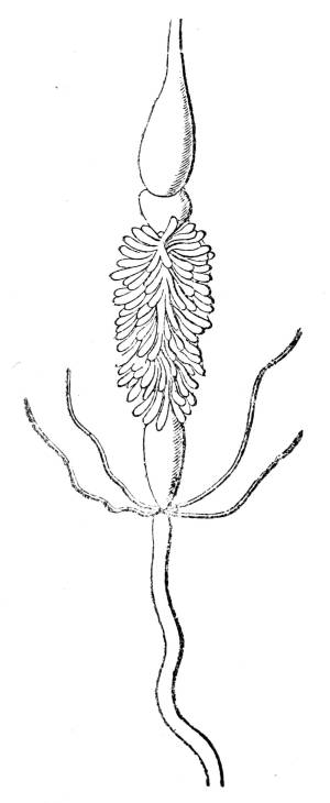 323. In the cylindrical vesicles carbonic acid is decomposed; in the reticulated vesicles, on the contrary, carbonic acid is re-formed. The oxygen required for this generation of carbonic acid is abstracted partly from the surrounding air; the9 carbon is derived partly, perhaps, from the air, but chiefly from the digested sap, and the carbonic acid, formed by the union of these elements, is evolved into the surrounding atmosphere.