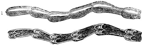 950. The solution of fibrin in the liquor sanguinis, and its spontaneous solidification during the process of coagulation, has been shown by Professor Müller in the following mode. Having carefully collected blood from the femoral artery of the frog, and also from the heart laid bare and incised, and having brought a drop of this pure blood under the microscope, and diluted it with serum, so that the red particles were separated from each other by distant intervals, he observed that there formed in those intervals a coagulation of previously dissolved matter, by which the separated red particles were connected together. By425 raising, with a needle, the coagulum occupying the intervening spaces, this solid matter was obtained free from red particles. The blood corpuscles of the frog are rendered, by a powerful microscope, so large, that this operation may be performed with the greatest distinctness. In consequence of the minuteness of the red particles of human blood they pass, with the liquor sanguinis, through filtering-paper; but those of the frog, being four times larger, are kept back by the filter, while the liquor sanguinis percolates through as a clear fluid, and then coagulates. This colourless coagulum is so transparent that it is not even detected, after its formation, until it is raised out of the fluid with a needle. It gradually thickens and becomes white. It is the fibrin of the blood in its purest state.