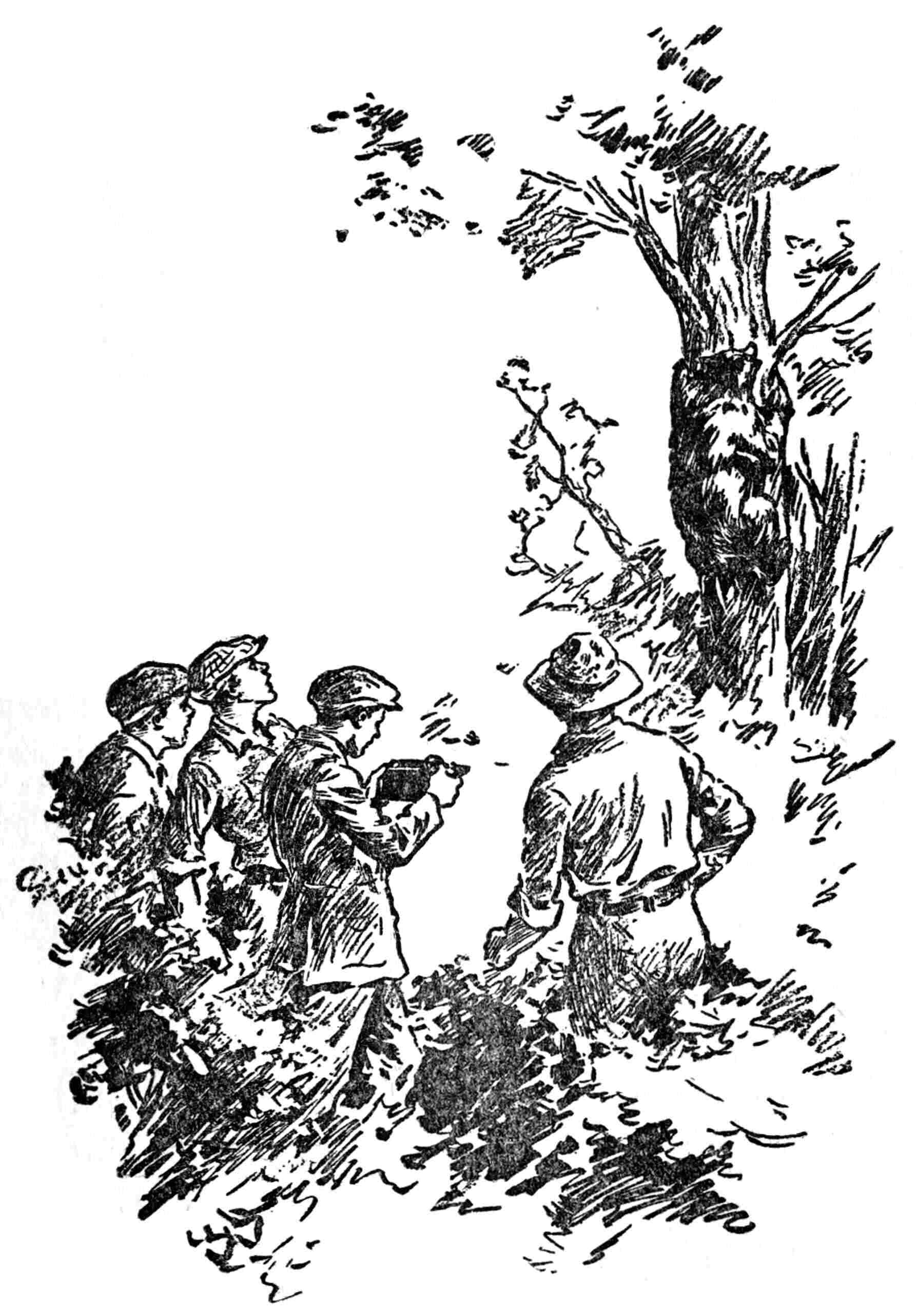 “But we’d get clawed up something fierce, wouldn’t we, if it came to a fight with the savage critter? Just listen to the snarls, will you?” the stout boy went on to say.