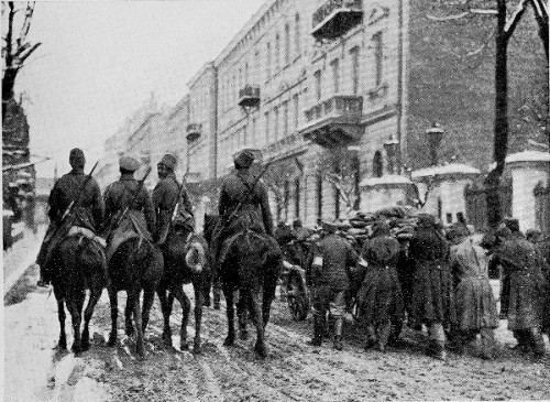 After the Russian evacuation of Lwow. The Bug Lancers retreating in good order.