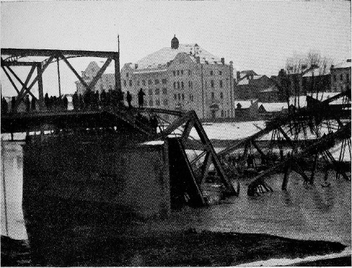 From this moment it was evident that Warsaw was doomed. To weaken the Front on the Blonie line meant a break there, and re-inforcements could not be sent either from the Narew line or the Southern Front where actions still raged. It was then clearly a mate in a few moves, if the Russians waited for it. But they did not. Instantly began their military evacuation, the cleverness 333 of which must I think be credited to Alexieff and his brilliant Chief of Staff Goulevitch. Those of us who have been studying the Warsaw situation for ten months, imagined that when the evacuation came, if it ever did, it would be through the city. What happened was entirely unexpected. The corps at Gorakalwara slipped over the river on pontoon bridges in the night, supporting the first corps that was already there, effecting the double purpose of getting out of the Warsaw zone, and simultaneously coming in between the Germans and the line of retreat toward Brest. About the same time the corps that lay next to the Vistula, on the Northern end of the Blonie line, slipped out over pontoon bridges and went to support the Narew defenders, thus making impossible the immediate breaking of that line. On August 4, by noon, there was probably not over one corps on the West side of the Vistula. Half of that crossed south of Warsaw before six, and probably the last division left about midnight, and at three a.m. the bridges were blown up. The Germans arrived at six in the morning, which seemed to indicate that they were not even in touch with the Russian rearguard at the end.